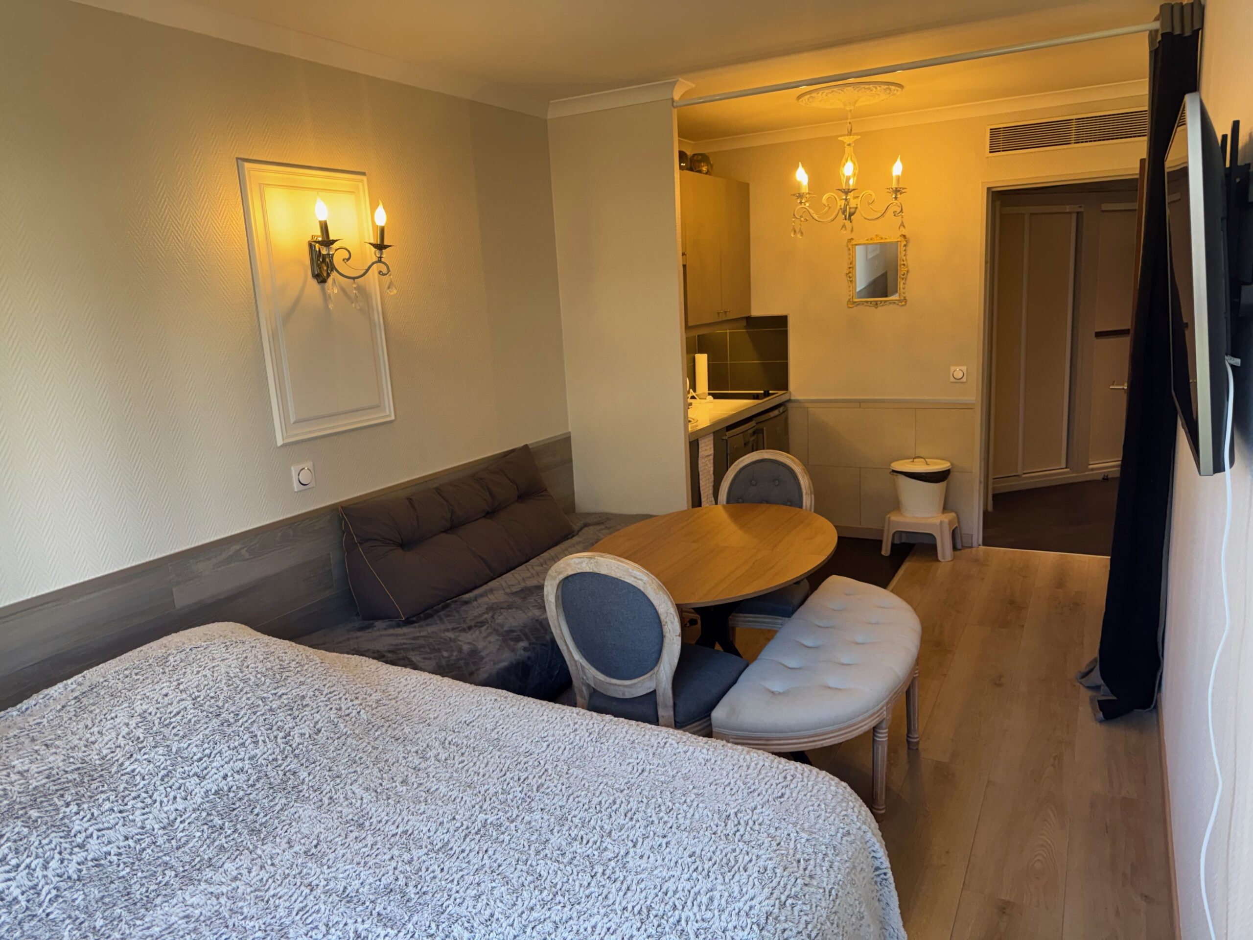 Appartement de 33 m2 au calme pouvant recevoir de 1 à 4 voyageur(s), il peut se transformer à votre guise en grand studio ou en deux pièces.